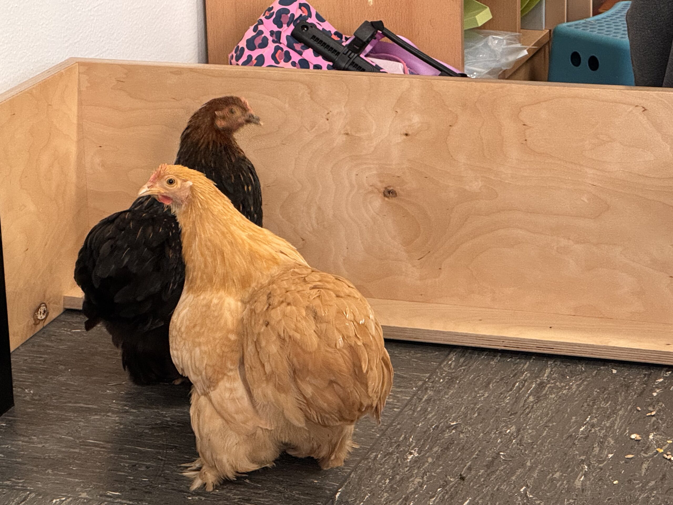 In der Hühnerklasse gab es heute was zu sehen: Die zwei Zerg-Cochins Foxy und Sternchen kamen auf eine Stippvisite vorbei. Hühnermama Laura Benyoub wusste allerhand über Hühner zu berichten. Das kam sehr gelegen, da das Huhn gerade auch Thema im Sachunterricht in der 2b ist. Es war eine besonders spannende Unterrichtsstunde.